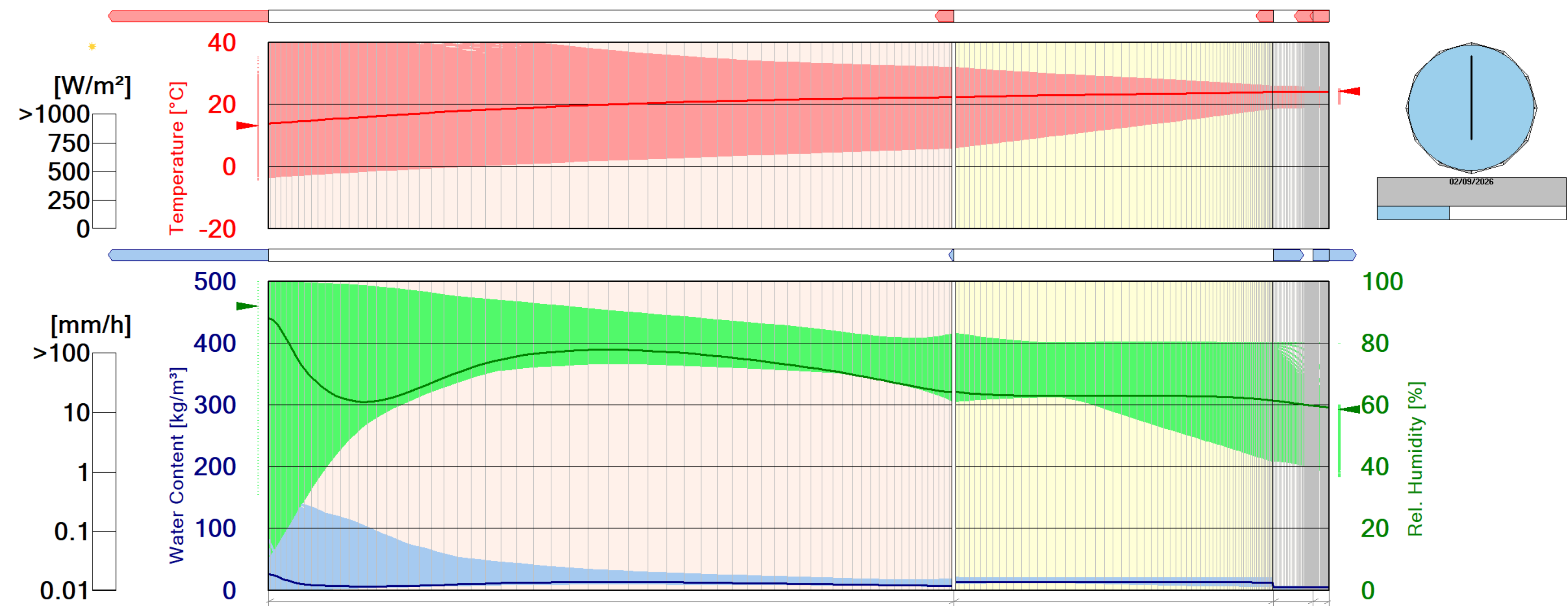 Connective effects are among the most common causes of elevated moisture risk and defects in insulation systems. To address this, we conducted a series of 2D thermal analyses examining heat flow at key construction details, including corners, ground-floor junctions, intermediate floor connections, and window/door openings. These insights informed optimisation of the system at junctions, reducing thermal bridging and lowering associated moisture and performance risks.